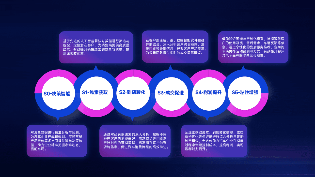 通过拓宽潜在客户来源、、、、优化线索分配并提高到店转化率,,,以增强销售效率。。同时,,,利用线索数据不断优化分析模型,,,,有效提升转化率,,,扩大营销影响力。。。